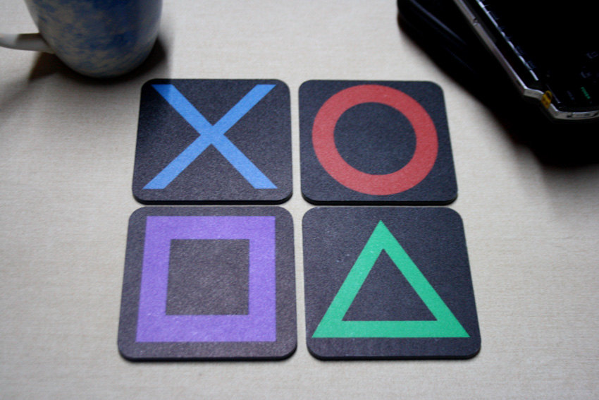 Keep that expensive coffee table, damage free with this snazzy set of PlayStation 4 symbol coasters.