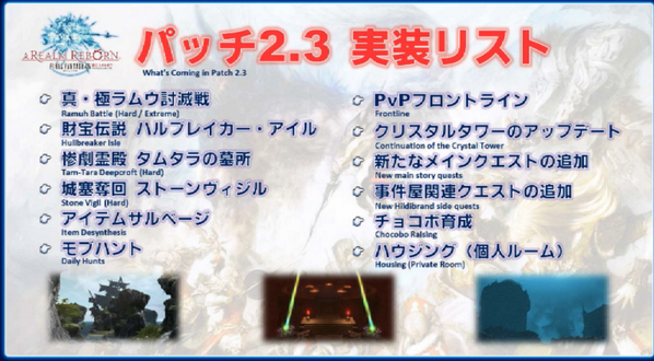 - Patch 2.3 is titled “Defender of Eorzea”.
