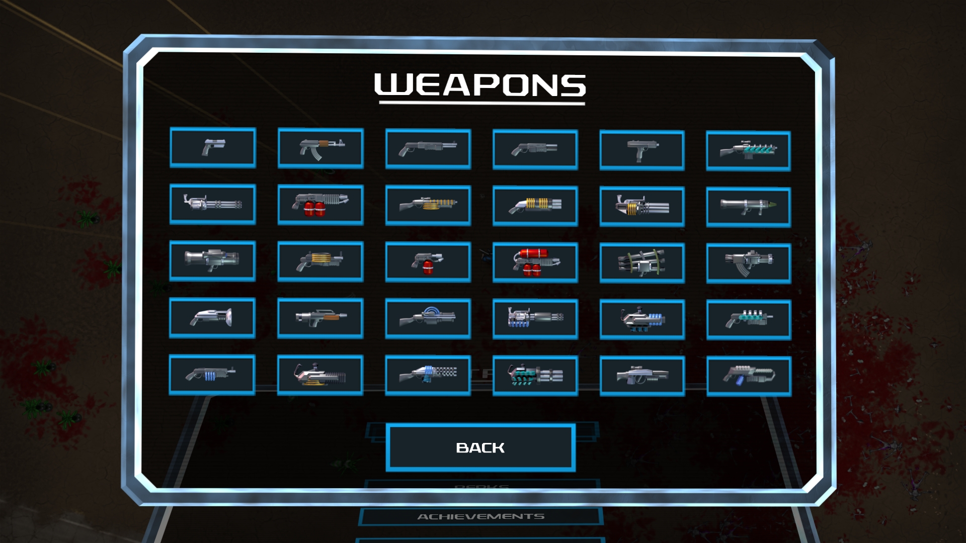 Along the way you unlock perks that range from making the playing field wider to additional health and more damage. Also while battling the hordes of enemies that Crimsonland throws in your path, enemies will drop power-ups and one-use items. These can be life saviors! They range from items that clear the map to freezing everything in sight for the brief period of time.