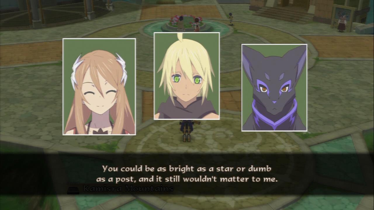 The biggest change to the battle system is the ability to capture creatures to use in your party, level them up, and evolve them to stronger creatures. It is a very Pokémon-like addition to the traditional Tales battle system. I think this was a great move by the Tales team because it added a whole new mini-game like feature. I loved raising creatures and evolving them. This system goes even deeper because each creature (and human) has an elemental type. The only problem with the creature capture system is that it is a little complicated to learn, but after you finally figure it out it becomes a breeze.