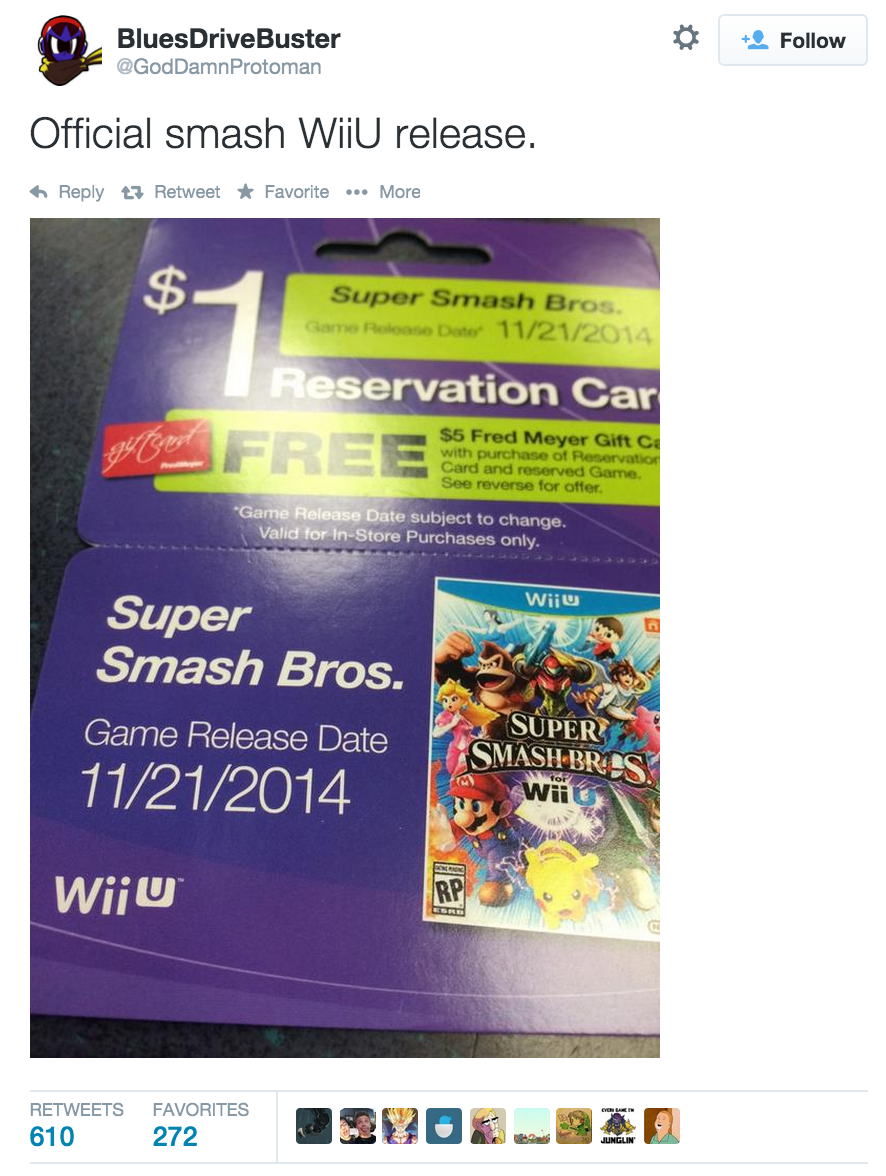 November 21st seems like a logical release date for Super Smash Bros. for the Wii U. The 21st is a Friday, and most Nintendo games release on a Friday or Sunday. It is also right before Black Friday adding a bit more validity to the date. Whether or not this is true, I hope Nintendo reveals the release date soon because they have been teasing it too long.