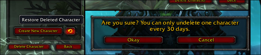 - Characters under level 10 and Death Knights at level 55 cannot be undeleted.