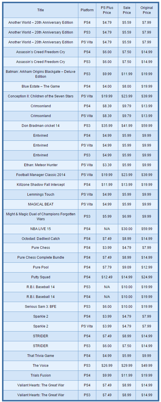 Note: All prices listed are those offered to PlayStation Plus members.