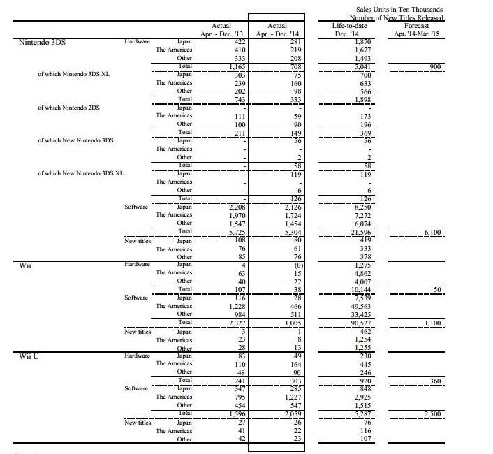 In Q4 of 2014, Wii U sold 1.91 million units and the 3DS family sold 4.99 million units. Nintendo just posted their financial results for the first nine months of the fiscal year. As of right now, Nintendo is still making profit