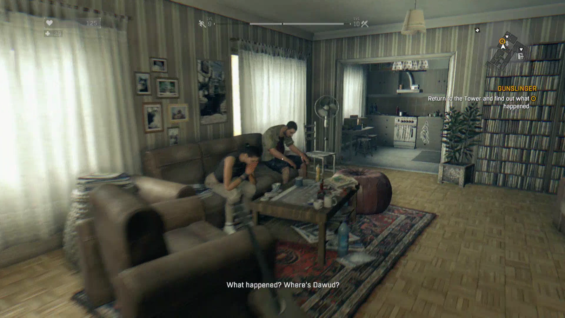 What really surprised me about the storytelling in Dying Light was not its main story though, it was the level of detail in some of the side quests.  Of course, just like many other games, Dying Light has its fair share of vague fetch quests that are only there for the sake of keeping players busy.  But if you can look past those, there are some truly amazing and sometimes even hilarious side quests available.  One quest called “Mother’s Day” has players running an errand for a man that requires you to pick up a movie and some chocolates for his mom.  Turns out, his mom has been dead for a long time and he has a bunch of pillows tied together on the couch, pretending it is his mother.  Like WHAT? I laughed hysterically during that quest! There are many more instances throughout the game that are just as fun.