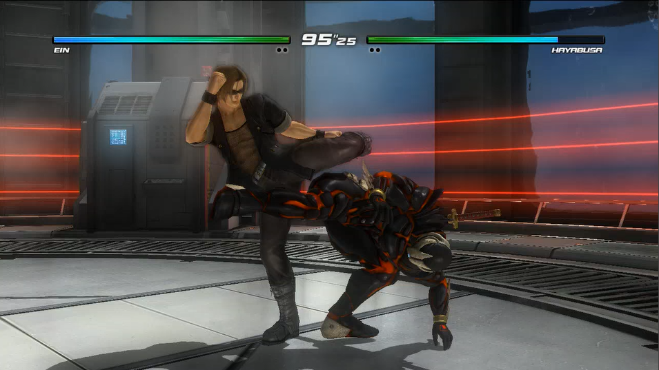 Should you take one step past the surface, things start to get more interesting. Fights in DoA are centered around the “Triangle System,” a rock-paper-scissors set of dependencies between attacks, throws, and holds. If your opponent attempts an attack, even if you’re stunned from a previous attack, you can catch the attack in a “counter hold” — provided you can predict whether the attack is high, middle, or low and input the same direction plus the block button. If your opponent tries to throw you, you can interrupt it with a well-placed strike. And if your opponent gets too greedy and tries to counter before you attack, punish them with a damaging throw. It’s an excellently-designed system that lends a natural elegance to fights that would otherwise be dominated by long, inescapable combo strings. Everything has a counter, and as soon as you become predictable, your opponent can take control of the match.