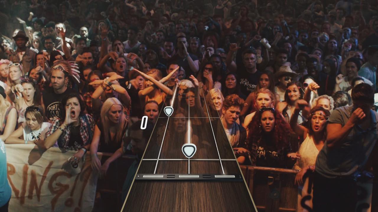 One of the biggest changes revealed in the trailer released today is the game will be played from the first person perspective of the guitarist and will feature live action video of the crowd and your fellow band members. The footage will change depending on how well you’re doing, meaning the crowd will boo and the band will glare at you when you aren’t doing well and will cheer and rock out beside you when you are.