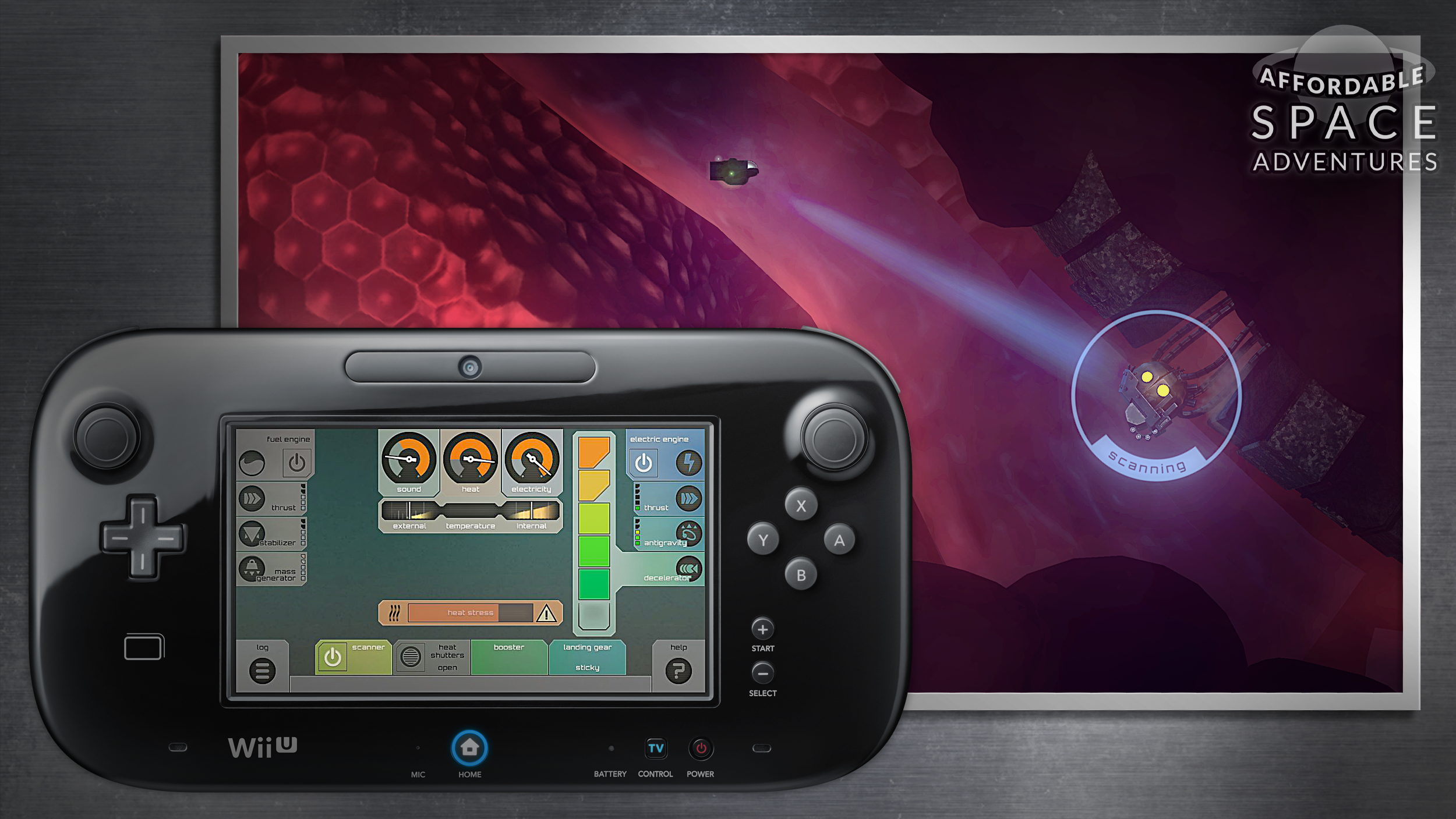 The gameplay is about what you’d expect from a side-scrolling space exploration game, until you add the ship management elements introduced on the gamepad. At first I felt like I was playing the best possible pixeljunk shooter cover album, until the ship management came into play on the gamepad. This is when the game really reveals its depth and complexity. This complexity shows itself after a few stages, when you’ll be tested on your ability to manage your ship’s varying electrical, sound and heat outputs. All of this is possible due to the most ingenious use of the Wii U gamepad to date, the Heads Down Display.