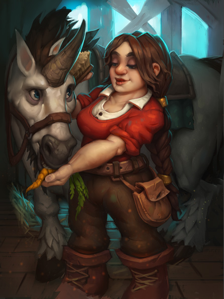 A new Innkeeper’s Story has also recently shown up on Blizzard’s Hearthstone site, which includes an illustration of a dwarf feeding what appears to be a unicorn… Except it isn’t a unicorn, it’s a Quel’dorei Steed, which is available in World of Warcraft’s “Argent Tournament” through countless hours of grinding reputation with the Silver Covenant faction.