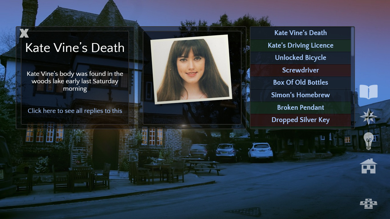 You take on the role of Inspector Frederick Jenks, investigating the death of a young post grad business student named Kate Vine. Although the official conclusion is that she committed suicide, some pieces of evidence and some of the testimony taken down have raised some questions. It is now your job to dig further into the case and question those connected to Kate in the village of Edenton as well as in the mysterious business training course she attended known as Atlas.