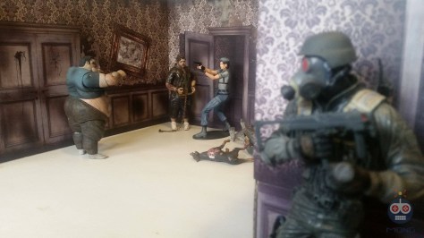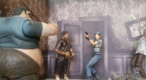 Okay, I have a confession to make — I’m one of those aforementioned weirdos. Yes, I take my large collection of action figures and try to recreate scenes I see in my mind’s eye, but reality never quite lines up with that mental image. Even the most well-sculpted characters still look like toys placed onto a boring shelf, no matter the gory event depicted by their poses. My Resident Evil (RE) collectibles always needed that extra something to jazz up the display, and that’s where Extreme-Sets comes in.