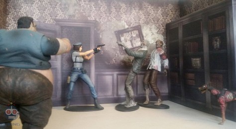 Extreme-Sets’ pop-up dioramas are a happy medium, looking quite nice to the human eye, taking little time to set up, and seem a great deal more affordable than the options listed above. The Abandoned House set runs $34.99 plus shipping when ordered directly from Extreme-Sets’ website, and I can honestly say it feels worthy of that price. With so many large panels available in the box, not only do my RE collectibles have a nice display, but so too do my Evil Dead, DC Comics, and The Walking Dead items.