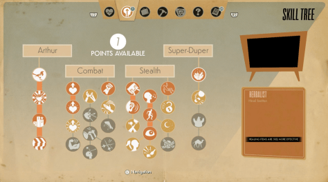 This frustration is compounded by the characters’ skill trees and abilities. After a few story objectives you’re showered with ability points that can be added towards better attacks, cheaper items at shops, or even removing certain gameplay mechanics entirely. For example, within Wellington Wells, you’re unable to run/jump/crouch without aggravating citizens nor explore at night. Putting some ability points into this will make you essentially invisible and above these rules – running around wherever and whenever without repercussions. This, adimitley made getting to the next objective less of a hassle, but removed key mechanics that were established previously.