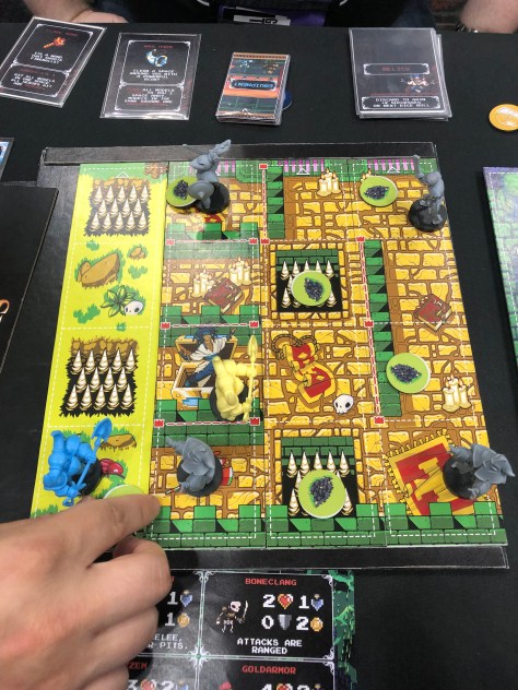 I started this hands-on session with Logan, the Community Manager for Panda Cult Games, and two fans of Shovel Knight from Kentucky. The two Kentuckians were reluctant at first to try the game, though both boasted their love of the Shovel Knight video game. I was also cautious about the board game; “How are they gonna make this board game capture what’s awesome about the video game?”