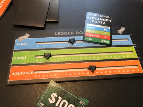 Each player must also choose the founder they want to play as. These founders don’t have any special abilities or counter strategies, but instead give players their starting amounts for Banks, Bonds, Insurance, and Cash. The nice thing about this is that all the founders are actual historical figures (Barclay, Winthrop, etc) who signed the Buttonwood Agreement and eventually started the New York Stock Exchange. This is a wonderful nod for history buffs and can add a nice layer of educational benefits for those interested.