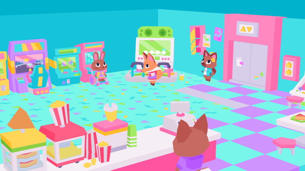 The story opens up with Fennel, a shy fox that is new to town and quickly becomes friends with some of the arcade-goers in town. As the game progresses, Fennel and his friend group (The Fluff Squad), build their friendships, engage in some silly shenanigans, and rally together in hopes of saving the town arcade. Throughout the story, there’s also wonderful moments of complete hilarity, but also one-on-one moments between Fennel and other characters through powerful contexts really elevates the meaning behind each interaction. This is especially done with the poignant writing and fantastic pop culture references sprinkled throughout. The conclusion is a bit hokey, but really drives the notion that this game is about friendship and creating a loving community with the people around you.