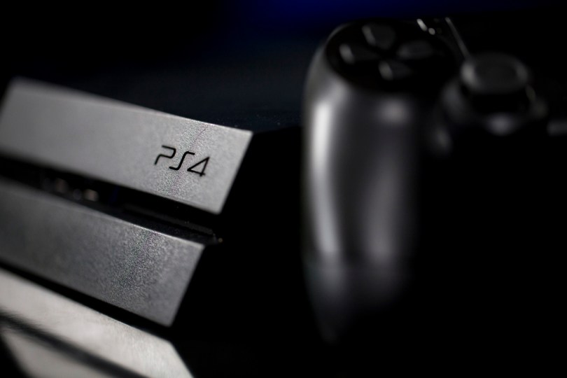 A logo sits on the front of a Sony PlayStation 4 (PS4) games console, manufactured by Sony Corp., in this arranged photograph taken in London, U.K., on Friday, Nov. 15, 2013. Sony, who released the PlayStation 4 game console today, is confident it can meet analysts’ sales estimates of 3 million units by year-end, exploiting an early advantage over Microsoft Corp.’s Xbox One. Photographer: Simon Dawson/Bloomberg ** Usable by CT and LA Only **